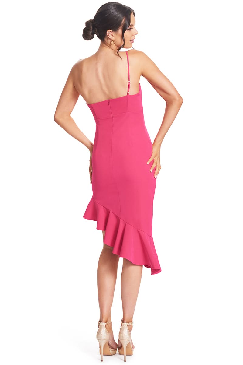 Eye turning dress in a pretty fuchsia color. I love that the ruffle details give it a playful vibe.